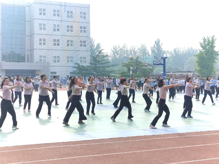 教工快乐减脂团带来的减脂操《千年等一回》动感十足、律动欢快,反映女院教职工拥抱健康、乐观积极的精神风貌。