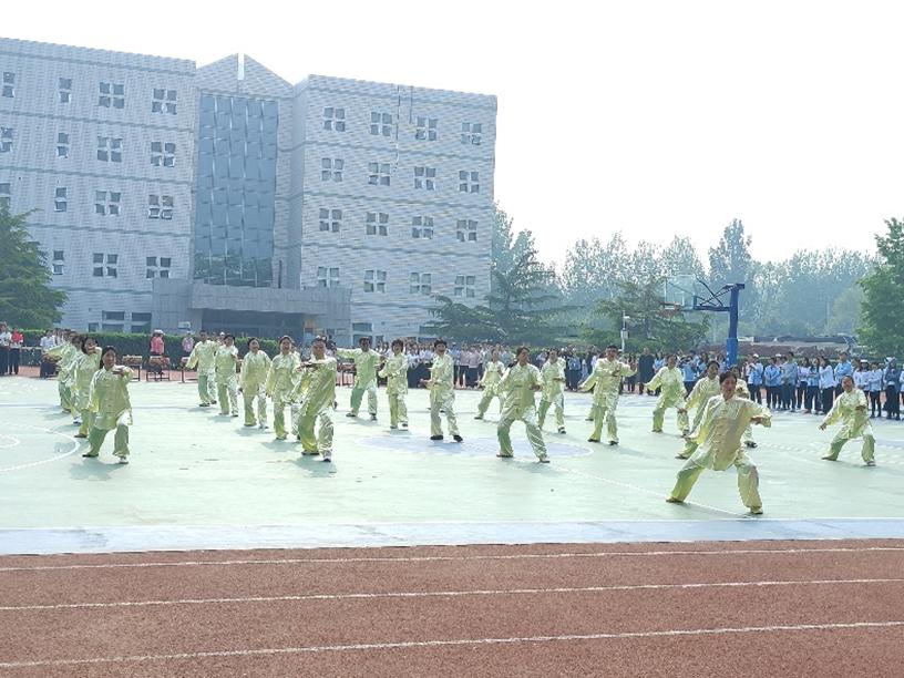 团体表演中,教工太极拳展示整齐划一、刚健有力,带大家感受太极之韵,领悟生命之道。