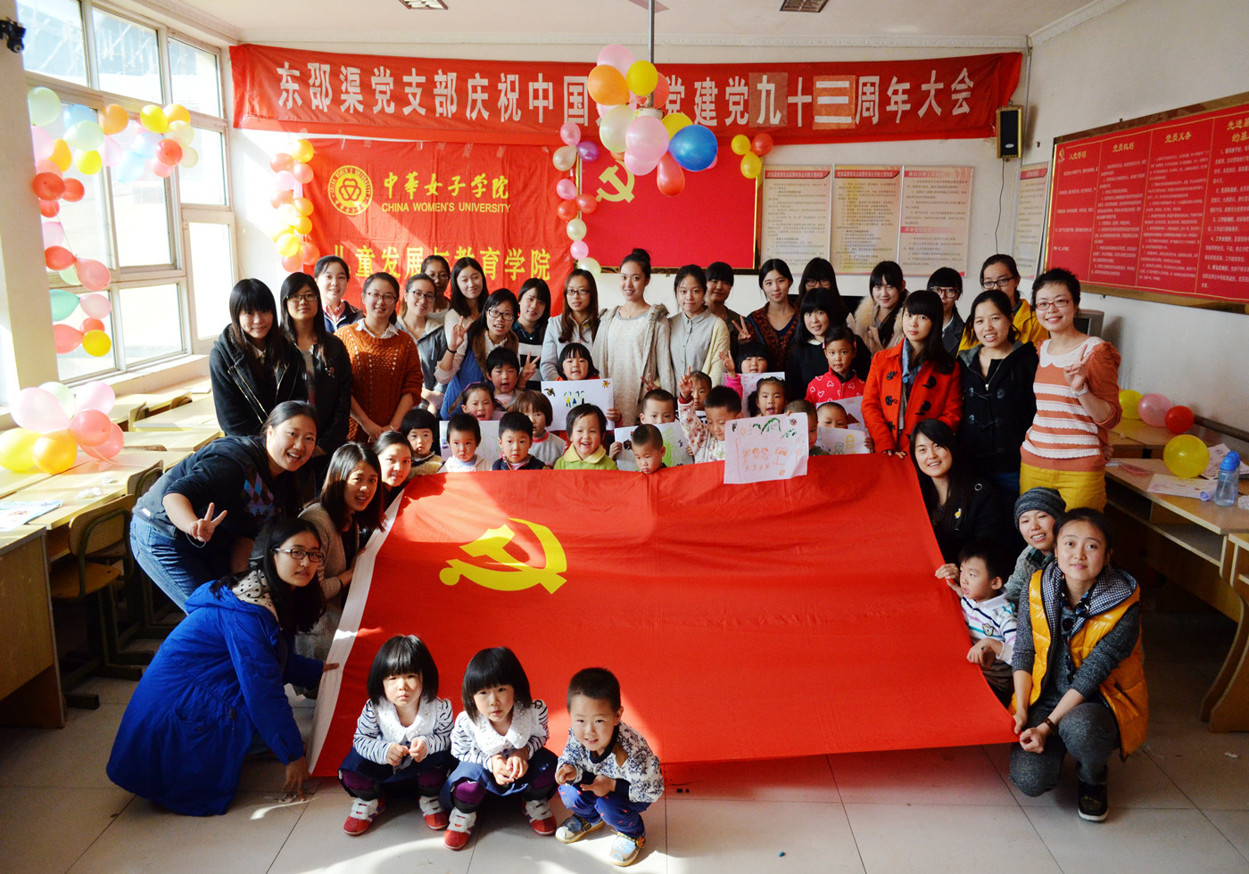 按照市委教育工委、市教委关于开展红色“1+1”活动的文件精神, 2014年10月19日,儿童发展与教育学院学生党支部25名党员再次前往密云县东邵渠镇东邵渠村,开展了以“携手再建,共筑中国梦”为主题的红色1+1亲子活动。