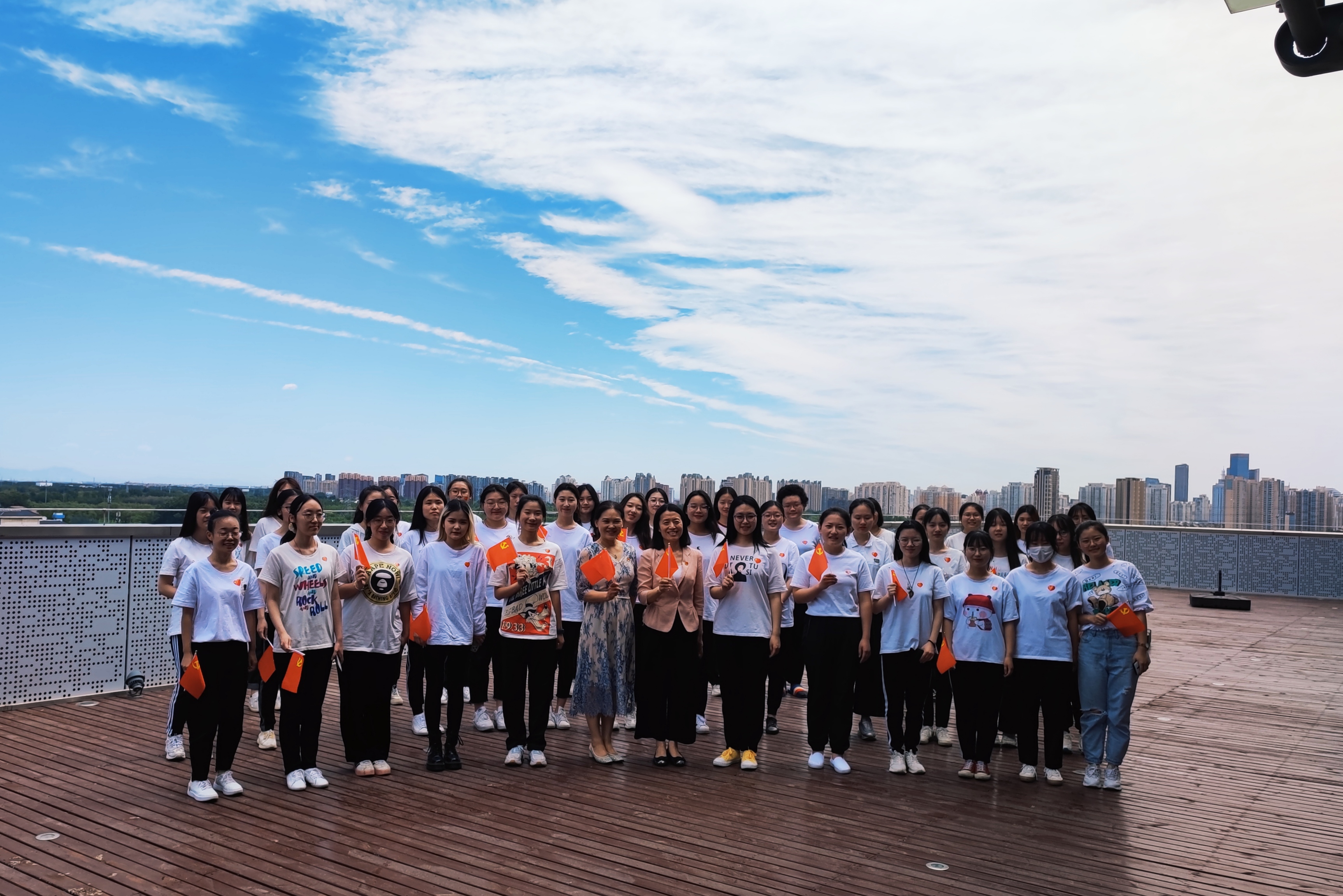 礼堂外、食堂前、东小院、小湖边、露台上……《没有共产党就没有新中国》、《唱支山歌给党听》、《歌唱祖国》、《我们是共产主义接班人》、《我和我的祖国》……一首首脍炙人口的曲目带领师生共同闪回那段激情燃烧的岁月,一曲曲红色的旋律诠释着感人至深的革命情怀和纯真情感。优美的旋律回荡在校园、爱国之情激荡在心间,同学们以积极向上的精神风貌,响遏行云的嘹亮歌声,唱出了对党、对祖国的无限的热爱,唱出了儿童发展与教育学院的学子们一心跟党走、为民族为国家奋斗的誓言和决心。