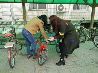 走进校园整理自行车
