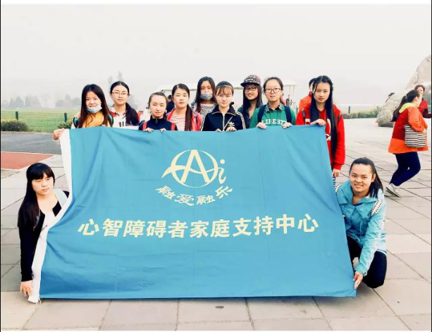 志愿者帮助残障儿童健身跑步