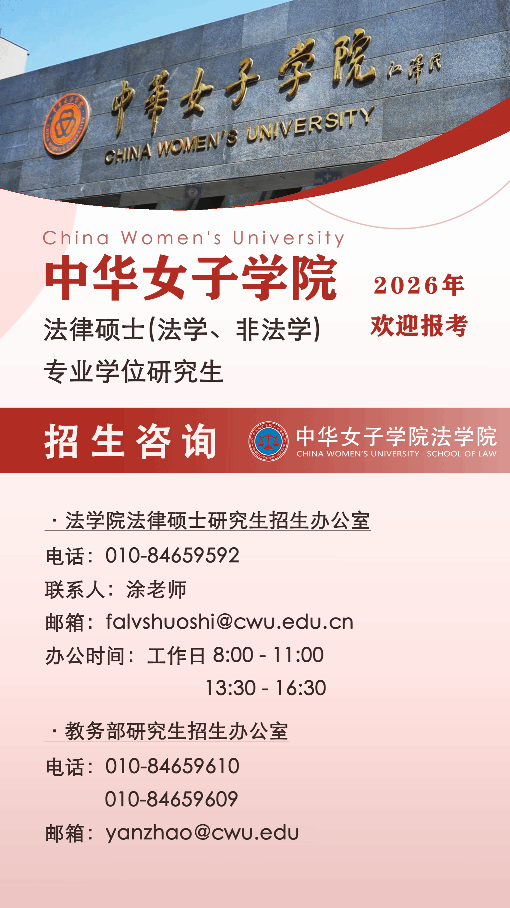 欢迎大家报考中华女子学院2026年法律硕士专业学位研究生!