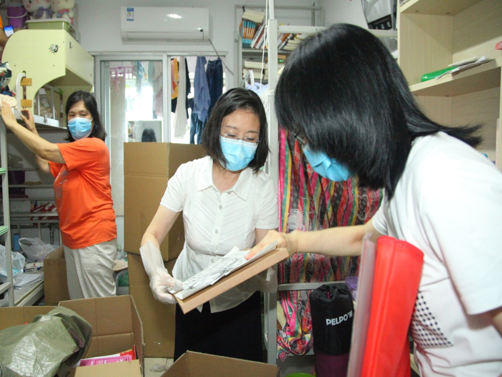 刘文蓉老师像忙碌的小蜜蜂,事前的信息搜集汇总,事中的事无巨细,都处处要操心,不仅和其他老师一起分担了多个宿舍的打包任务,还在和邢国威老师完成最后的扫尾工作……终于在晚上12点多把学生们的全部行李顺利交付给快递公司了。