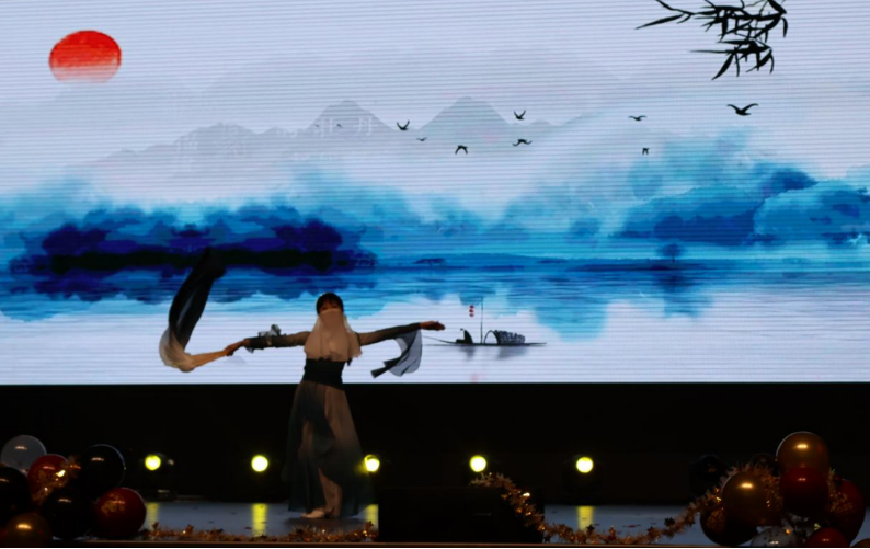 古典与现代交织,舞蹈盛宴启幕。古典舞轻盈起步,从《洛春赋》的牡丹之艳,到《故梦》与扇舞《青花瓷》的诗意流淌,再到瑜伽《映山红》的温婉坚韧,一系列表演交织出一幅幅细腻的历史画卷,将观众缓缓带入往昔的雅致时光。现代舞灵动接棒,迪斯科《扑通100大舞厅》的欢快节奏点燃了现场气氛,欢乐无限蔓延;舞蹈K-POP《玫瑰人生》《Whiplash》与《BITE BACK》以激扬的热力与精湛舞技,将青春力量尽情挥洒,为舞台注入青春活力。