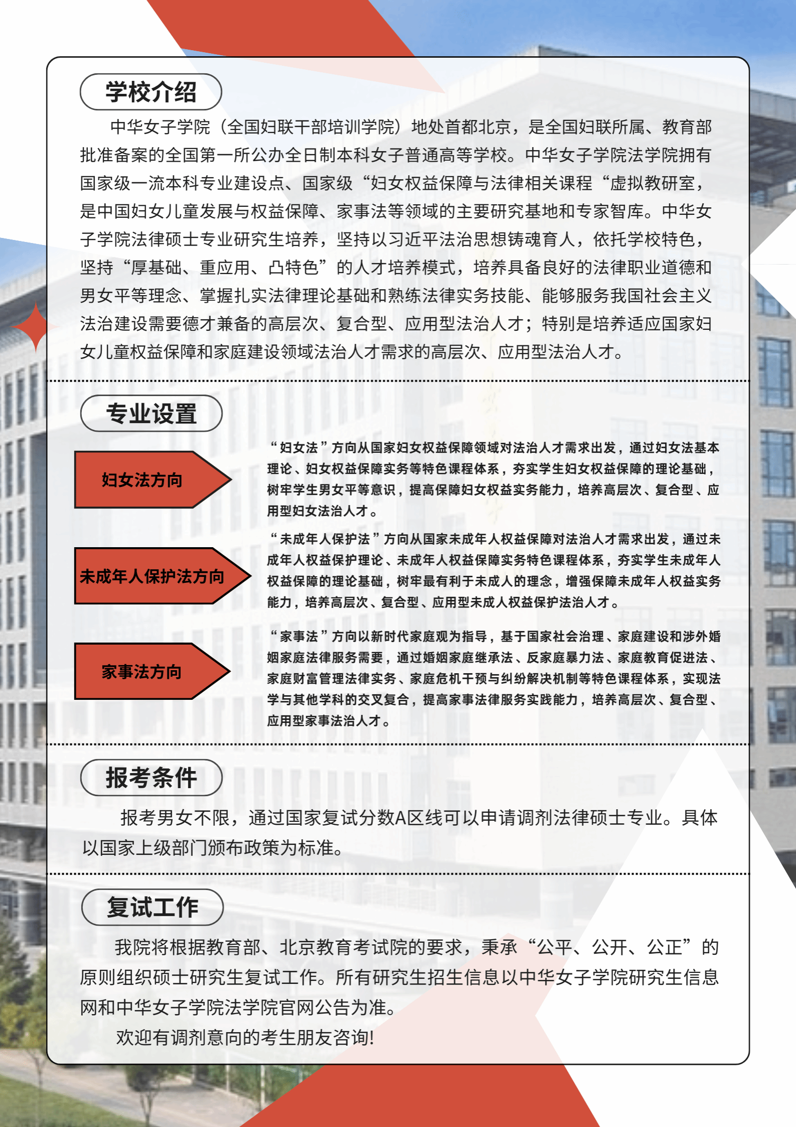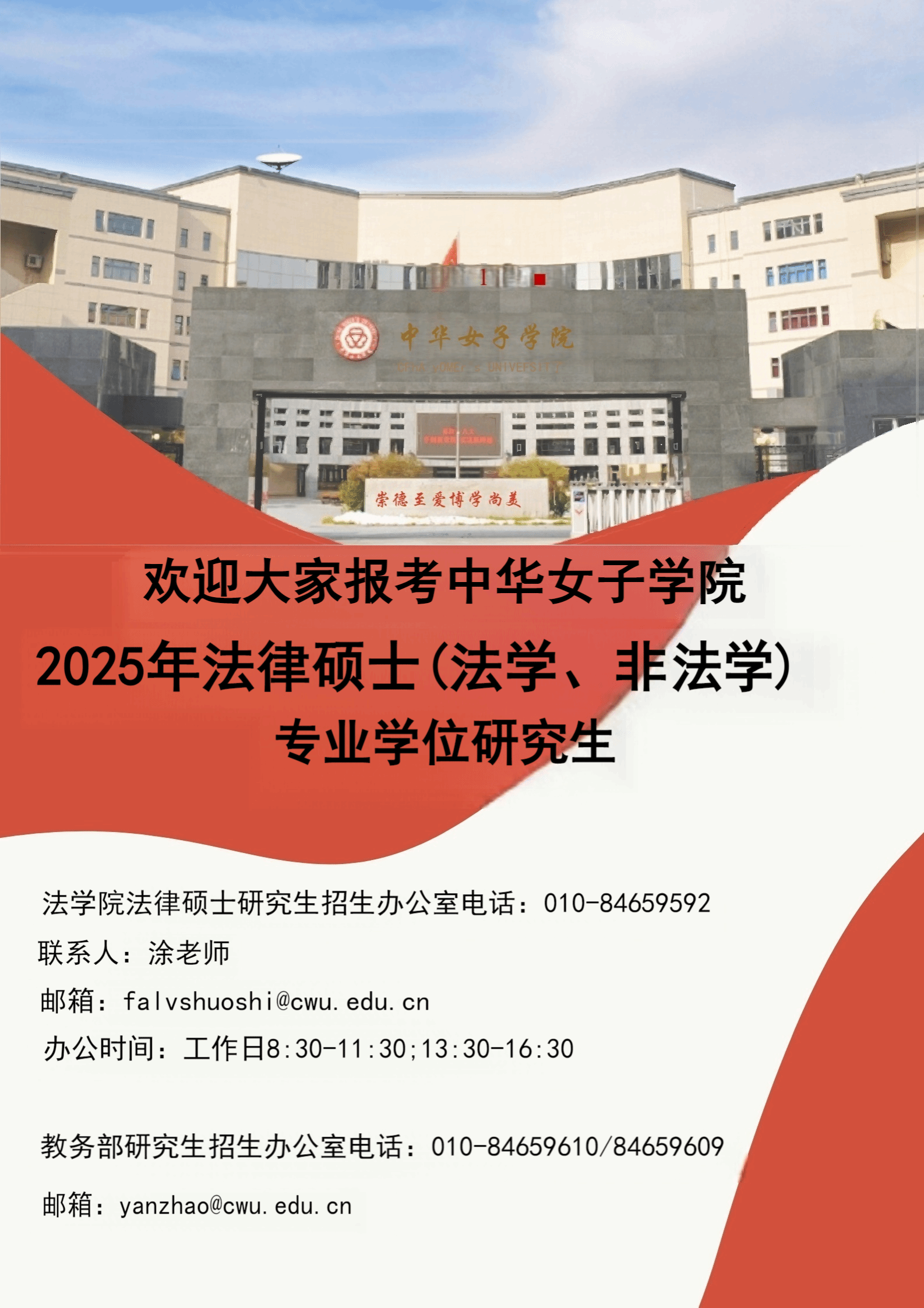 欢迎大家报考中华女子学院2025年法律硕士专业学位研究生!