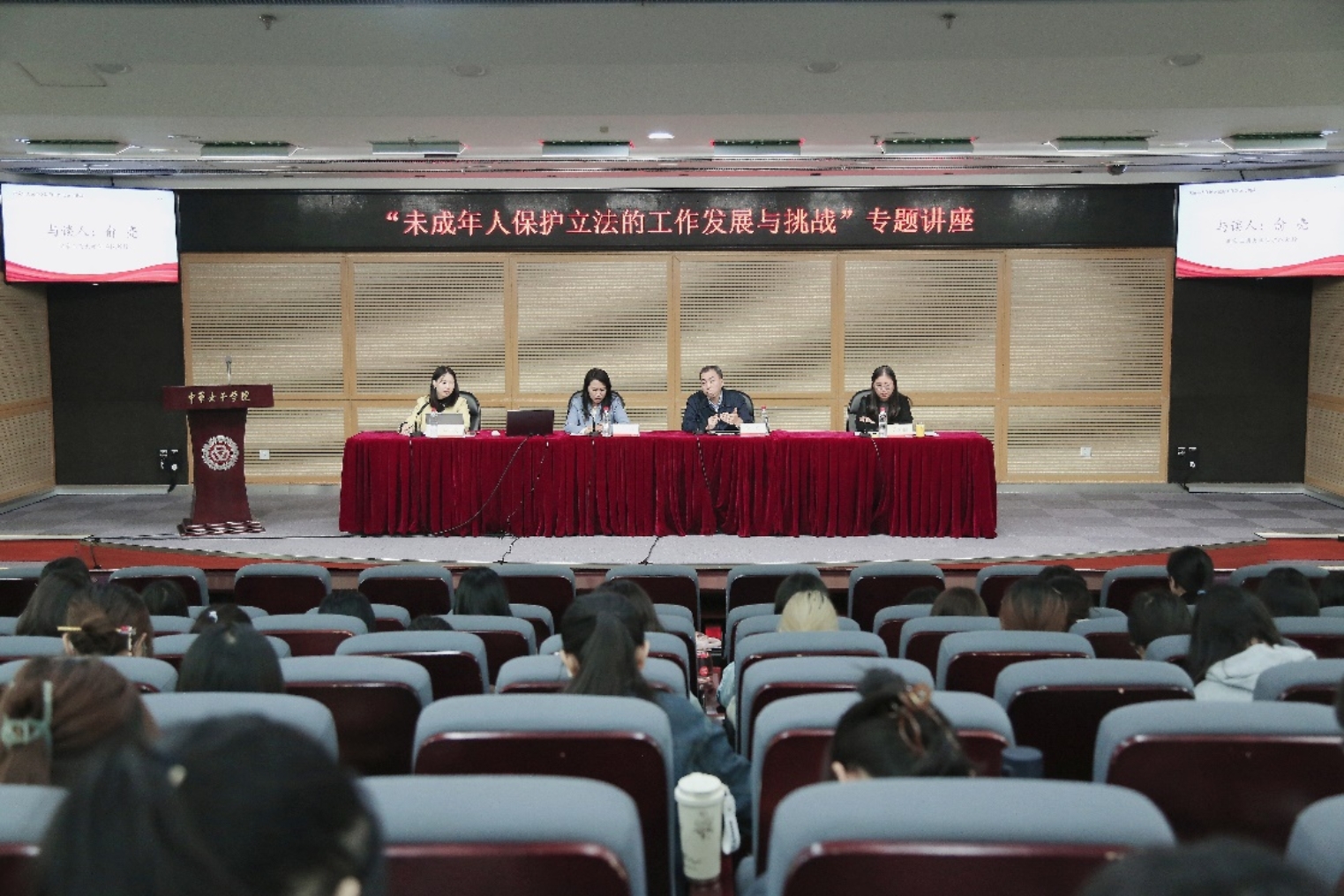 11月2日上午,法学院举办“未成年人保护立法的工作发展与挑战”专题讲座。本次讲座特邀北京市致诚律师事务所副主任、北京市十六届人大常委会委员、全国律师协会未成年保护委员会副主任兼秘书长、法学院法律硕士校外导师张雪梅律师主讲,北京工商大学法学院俞亮教授、中华女子学院法学院张荣丽副教授作为与谈嘉宾。2021、2022级本科全体同学参与讲座,讲座由法学院副院长周小雯主持。张雪梅律师结合自己参与未成年人保护法律法规制定修订的经历和办案经验,分别从未成年人保护两法的修订、未成年人保护立法和未成年人保护工作的发展与进步三个方面进行分享。俞亮教授通过梳理少年司法的发展、未成年人保护法在实践中的落实及立法瑕疵,引出了未成年人保护法未来发展需要关注的三个重点问题。张荣丽副教授指出未成年人保护工作仍面临挑战,未来要继续关注法律落实、重视相关法律修订与未成年人保护法的有效衔接、弥补法律现有空白。通过本次讲座,同学们对未成年人保护法有了更深刻的思考,收获颇丰,未来,同学们也将为维护未成年人合法权益奉献出自己的力量。