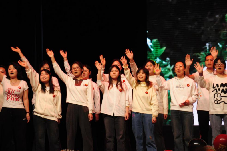 爱与希望交织成最美的旋律,成为我们共同记忆中永不褪色的篇章。在温馨的聚光灯下,法学院教师献唱演绎经典曲目《童年》,唤醒了每个人内心深处那份纯粹而真挚的快乐。正如开在荆棘丛中的花,即使面对困境依然坚韧生长、向外绽放。联欢会的最后,小红花芝士团师生共同演唱歌曲《送你一朵小红花》,传递着生命的顽强与不屈,更将无尽的温暖与希望播撒心田。