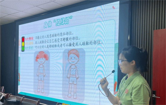 7月18日上午,主讲队员王恋、赵文琪为同学们做了《少年儿童如何远离性侵害》的讲座。她们通过身体红绿灯的小游戏让孩子们认识到自己的身体部位隐私以及男孩与女孩的生理区别。告诉同学们应该相互尊重,不侵犯他人隐私,对侵犯个人隐私权的行为说不,在对抗侵犯者时首先要保障个人安全。同时还为同学们介绍了一些远离性侵害的小技巧。