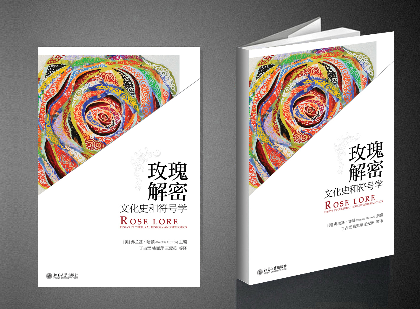 学术著作《玫瑰解密——文化史和符号学》由弗兰基·哈顿博士编著、翻译研究中心全体成员合译、北京大学出版社2015年5月出版。左图为原著及光盘,右图为中文译著。