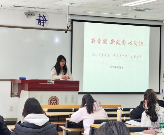 为明确新学期学习目标,凝聚专业发展共识,2026年3月9日,国际教育学院“开学第一课”主题班会在教图楼206教室举行。国际教育学院党总支书记、院长、班主任、辅导员和全体学生参加。