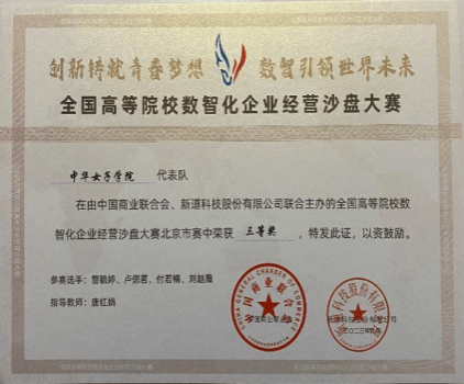 近日,第十九届全国高等院校数智化企业经营沙盘大赛北京市赛在首都经济贸易大学落下帷幕。来自北京市15所高校、28支本科生队伍参加了比赛。我校管理学院会计学专业管毓婷、卢偲茗、付若楠、刘赵薇4名同学和唐红娟老师组成1支代表队参加了此次大赛。经过训练赛、初赛和决赛激烈紧张的角逐,最终我校荣获三等奖。这是我校第一次参加此项大赛。