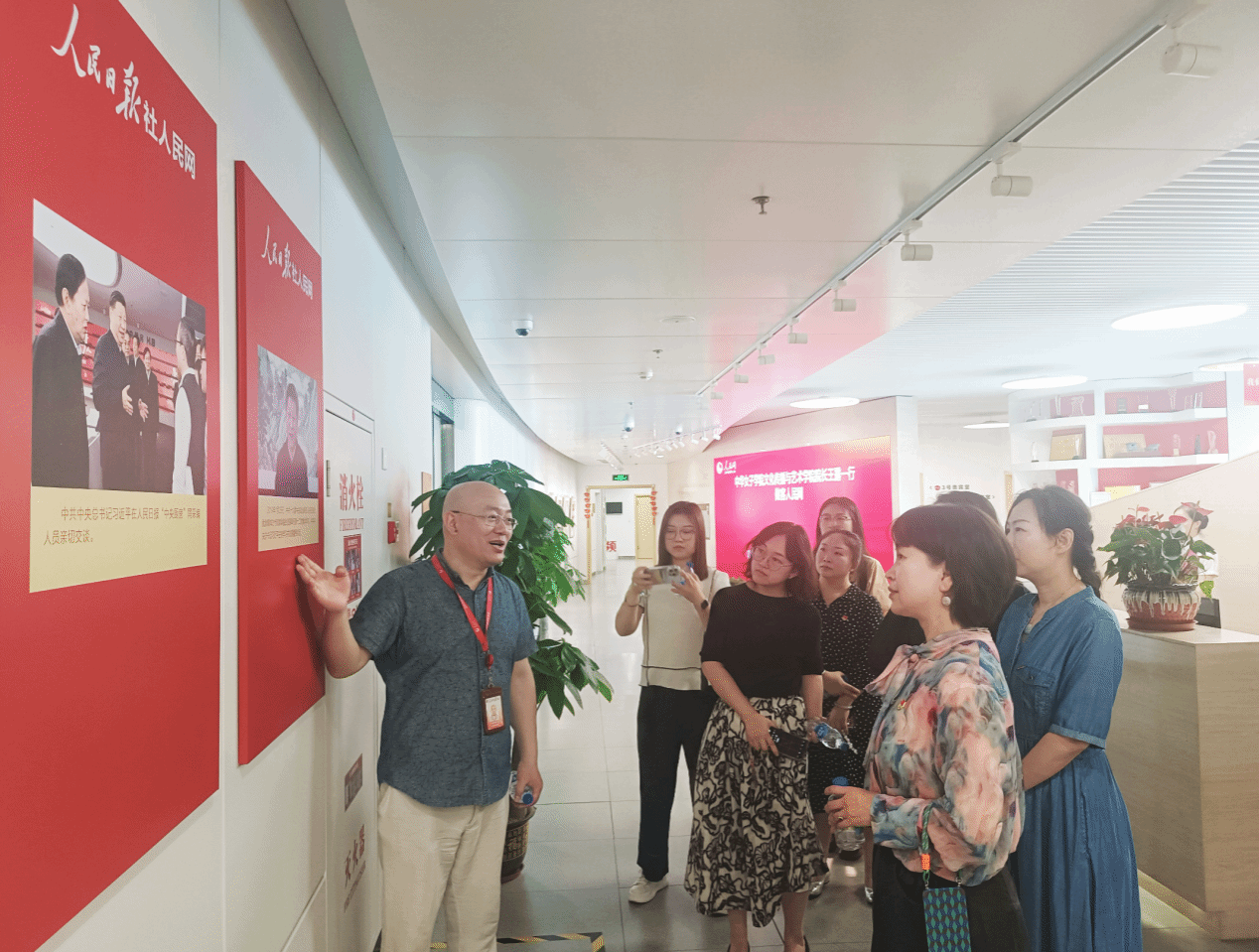 为巩固拓展学习贯彻新时代中国特色社会主义思想主题教育成果,加快一流专业建设步伐,进一步做好人才培养工作,2024年6月3日上午,中华女子学院文化传播与艺术学院院长王露、副书记刘洪玉、副院长范晓虹等8人一行前往人民日报社,在人民网进行参观考察,与人民体育开展党日学习活动及一流专业建设工作交流。