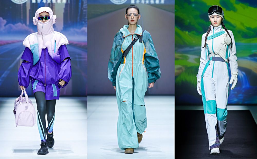 数智时代,运动装设计彰显科技与时尚的共振。毕业生通过市场调研及综合设计构思,打造适应多场景切换的功能性服装。例如,设计融入环保面料与一体织针织工艺,以流畅剪裁呼应人体工学;采用模块化设计,结合层系统模式,兼顾运动功能与时尚变装,使得服装能够灵活适应用户不同场景的穿衣需求。这些作品呼应全球运动装智能化趋势,为中国设计在材料创新应用与可持续设计领域的发展助力。