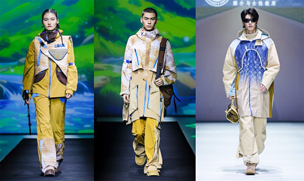 本次发布会的总策划,文化传播与艺术学院院长王露阐释了“悦途她乡”的深意:在后疫情时代,“出发”不仅是地理迁徙,更是心灵的疗愈与重塑。悦途她乡是这次旅途的起点,设计为这场旅途不仅带来身体上的舒适、安全和便利,还成为旅途中抚慰灵魂、寄托情感的媒介。毕业生们以用户需求为核心,将包容性设计理念贯穿创作,巧妙运用中国传统服饰元素与手工技艺,结合模块化功能、科技面料与可持续设计,探索运动场景中人、社会与自然的和谐共生。作品涵盖旅行、徒步、骑行、露营等多元户外场景,既满足身体的安全舒适,亦成为情感共鸣的载体,传递对生活的热爱与远方的诗意向往。