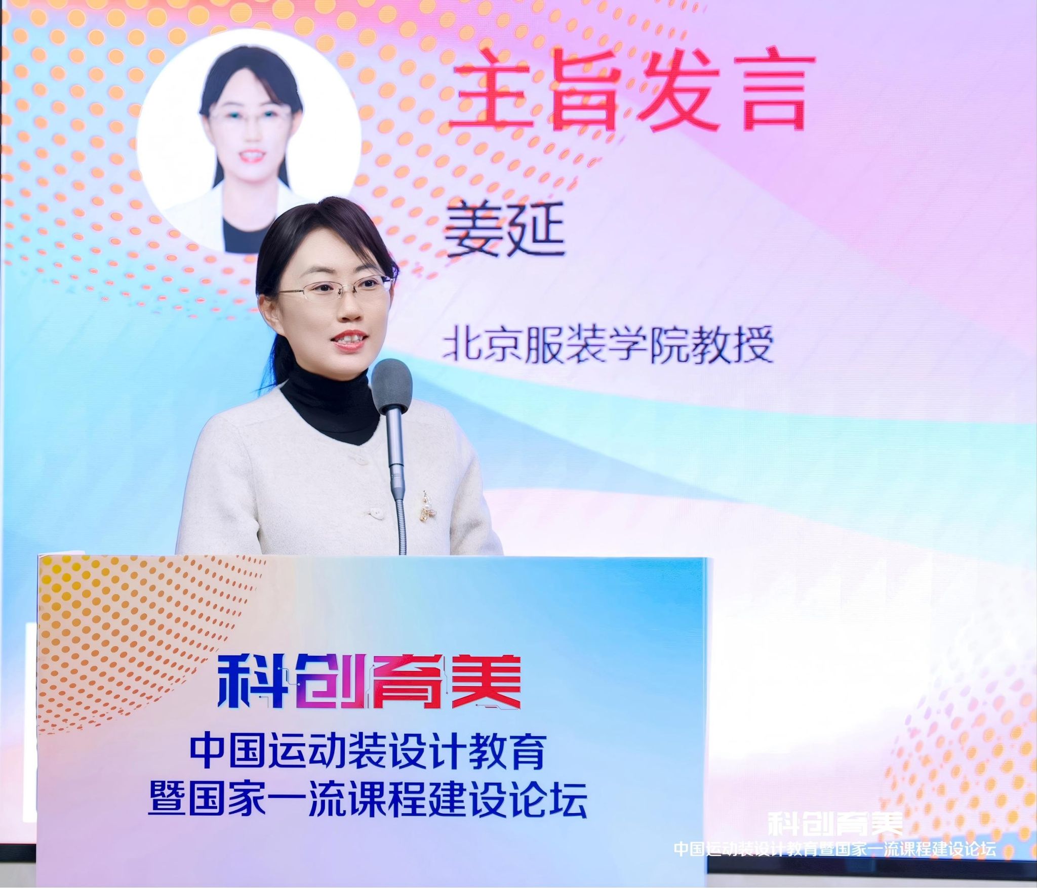 在论坛“人才赋能”模块,北京服装学院姜延教授围绕《艺工融合·思政引领·数字赋能——“服装数字科技”国家一流课程教学创新实践》,从三大维度分享课程建设创新路径,为教学与数字技术深度融合提供借鉴;江南大学杨瑞华教授以《纺纱工程》国家一流本科课程建设实践为核心,深入浅出解析基础课程建设逻辑,为运动装设计教育基础环节改革提供重要参考;中华女子学院服装与服饰设计专业负责人孙超带来《双维驱动:功能性服装材料课程工程原理与设计思维的融合教学探索》,其“工程原理+设计思维”的融合教学模式,契合跨学科理念,为相关课程建设提供了鲜活范例。三位专家的发言从不同课程类型、不同教学维度出发,全方位展现了服装专业人才培养的创新实践,为高校优化课程体系、强化人才赋能提供了多元经验。