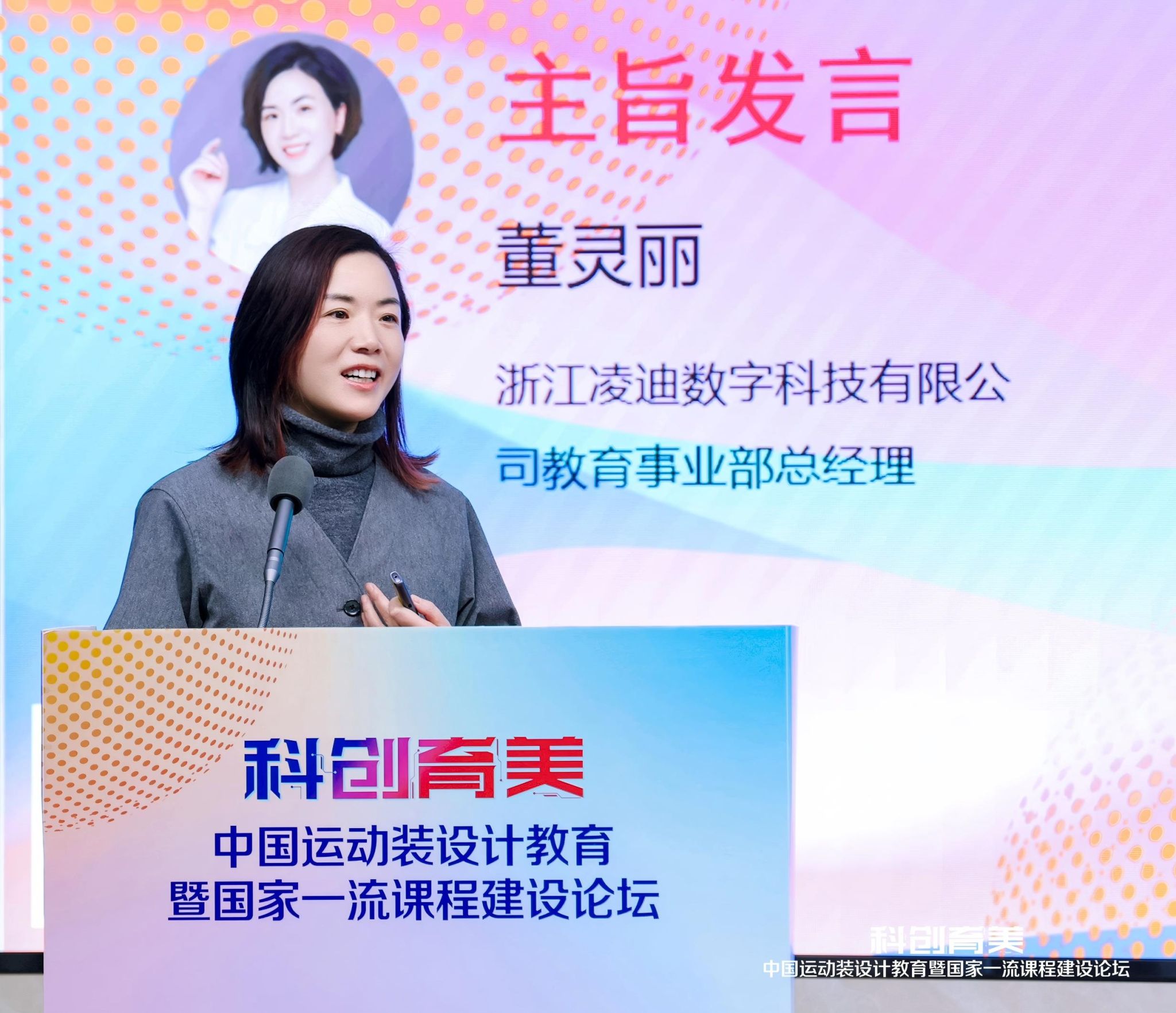 “产业变革”模块,凌迪科技高校事业部总监董灵丽女士围绕《AI+3D驱动:运动装设计数智升级和教育创新路径探索》,从产业视角解读了数字技术对运动装设计的赋能及教育适配方向;中国服装设计师协会副秘书长刘妍女士以《2025服装产业现状与人才需求调研》为主题,凭借权威调研成果明晰了产业发展态势与人才需求导向,为产教精准对接提供关键依据;本颜女装创始人兼象征软件北方区总经理高崇吉先生分享《服装品牌零售企业信息化全景》,结合双重行业经验展现产业数字化转型全貌。三位嘉宾的发言从技术应用、需求洞察、实践落地多维度解构产业变革,为运动装设计领域的数智化发展与产教融合提供了宝贵的产业视角与实践思路。