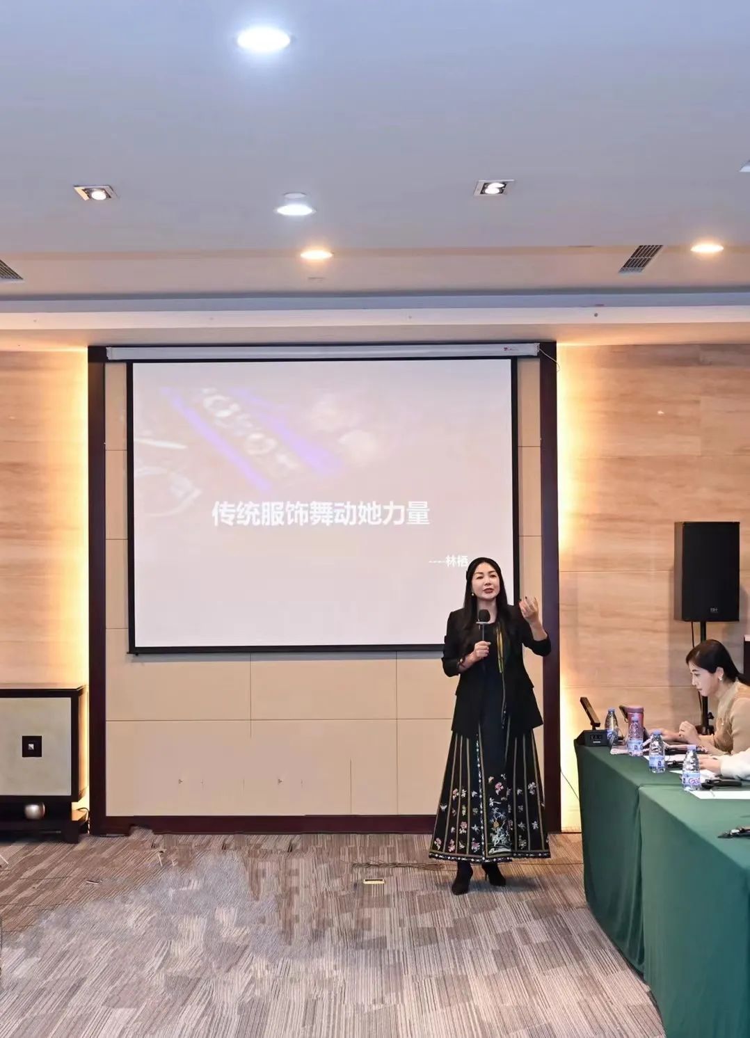 中国十佳时装设计师、中华女子学院(全国妇联干部培训学院)客座教授林栖以“传统服饰舞动她力量”为主题展开分享。多年来,林栖一直致力于传统文化与技艺的传承与发展,推动传统手工坊的建立和技艺创新应用,以传统技艺带动妇女创业就业,以“她”力量推动技艺的传承发展。马面裙作为最具代表性的新时代中国特色的传统服饰,承载了深厚的历史和文化底蕴,林栖以马面裙为例,讲述了马面裙的研究创新和应用,借助非遗的力量,赋能乡村发展,走向世界舞台。她指出,马面裙能够成为赋予“她”力量和女性魅力的存在,对推动中国传统文化的传播与传承、促进中国经典服饰之美的国际传播发挥更加积极的作用。