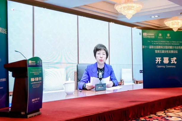全国妇联副主席、书记处书记、党组成员章冬梅线上出席论坛并发表致辞。章冬梅指出,在以习近平同志为核心的党中央坚强领导下,中国妇女事业正处在发展环境更优、干事舞台更广、权益更有保障的最好时期。联合国教科文组织媒介与女性教席作为学界具有一定影响力的交流平台,为妇女发展和传媒事业做出了积极贡献。女性发展论坛聚焦妇女发展的不同领域,对促进各国妇女全面发展发挥了积极作用。希望本次论坛在讲好中国和中国妇女故事,宣传好中国经验和创新理论上做出新的努力,在促进妇女全面发展、加速实现性别平等上做出新的贡献,在构建人类命运共同体、推动全球妇女事业发展上取得新的成效。