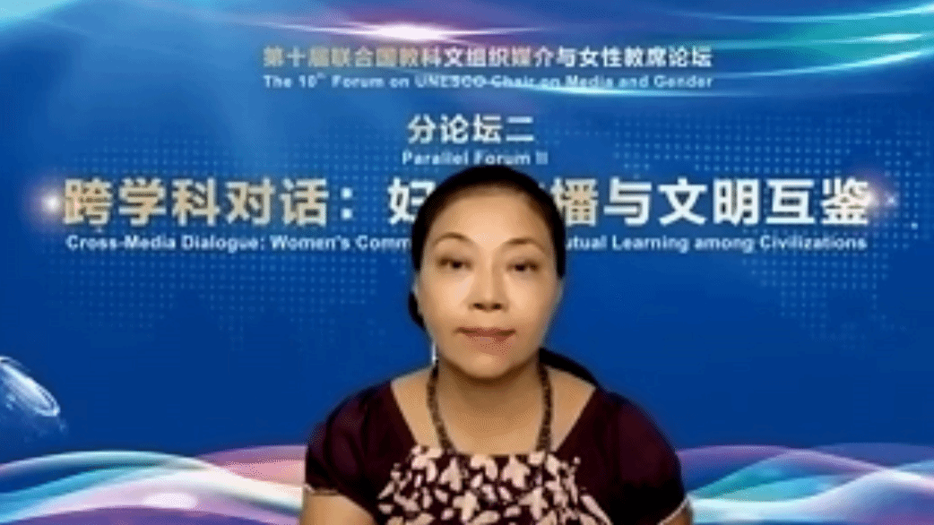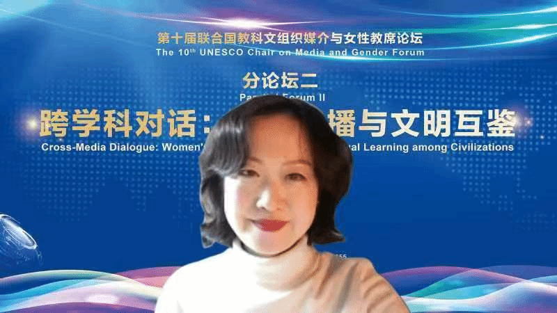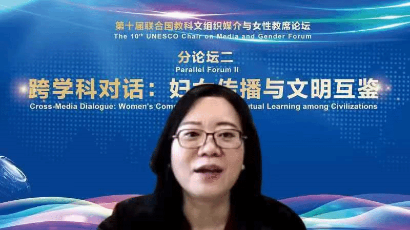 平行论坛讲座伊始,石彤教授介绍了本次平行论坛的主题——跨学科对话妇女传播与文明互鉴,她说到:“构建人类文明共同体和人类共同价值需要不同的国家、不同的区域、不同学科的共同努力进行对话和互鉴。妇女传播和妇女发展也是我们整个论坛的关键词。”