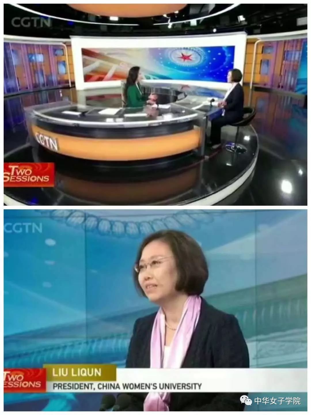主持人:“我们很荣幸地请到了中华女子学院院长刘利群女士,非常感谢您来到我们的节目。首先祝您节日快乐!”