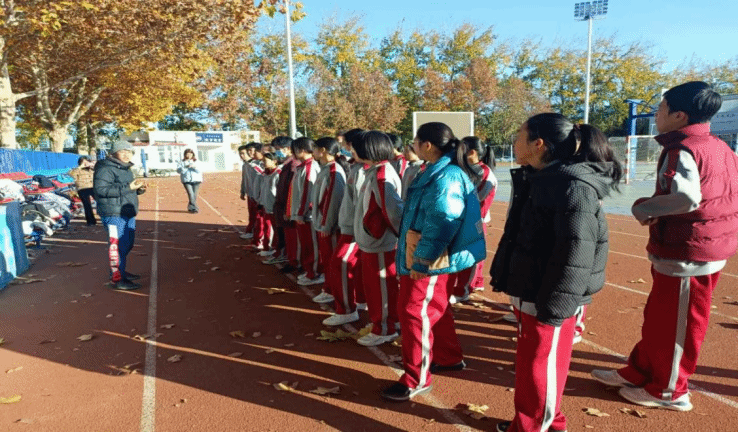 在操场上,中学生在体育部教师周惠娟副教授的带领下体验了定向越野课程,学习了定向运动基本知识和技术,练习了越野跑的能力,了解了定向运动文化,掌握了指北针的使用方法。作为一项融入自然、追求挑战的运动课程,定向越野深受中学生的喜爱。一个小时的时间里,中学生带着问题奔跑在校园中,提高了心肺机能,培养了坚定勇敢的意志品质,锻炼了独立思考和面对困难冷静判断的能力。
