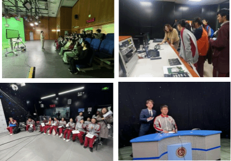 文化传播与艺术学院为游学的中学生策划了“育慧金声——大手牵小手,共筑主持梦”小主播训练营。在文化传播与艺术学院副院长霍烺白、播音与主持艺术专业教师周子云副教授的组织下,中学生分成两组在星空演播厅和绿幕演播厅分别进行新闻主播和新媒体主持课程体验。我校播音专业师生对中学生的吐字、发声、体态、表情等进行耐心指导,并安排中学生逐一上镜演示。小主播训练营使中学生领略了新闻主播和新媒体主持的职业魅力,提升了语言表达、文字写作、公开演讲、观众互动和应变能力。