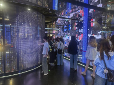 作为亚洲首个智慧图书馆标杆,北京城市图书馆以世界最大的单体阅览空间和中国最大的智能化立体书库而闻名。图书馆将中国传统美学意象与现代设计理念相融合,打造了“临山间、于树下、勤阅览”的沉浸式阅读体验。在讲解员的引领下,师生们徜徉在森林书院、艺术文献和非遗文献的文化海洋中,感受传统与现代交织的文化魅力,并在元宇宙体验馆与虚拟数字人互动,体验了数智技术重塑文化认知的新方式。