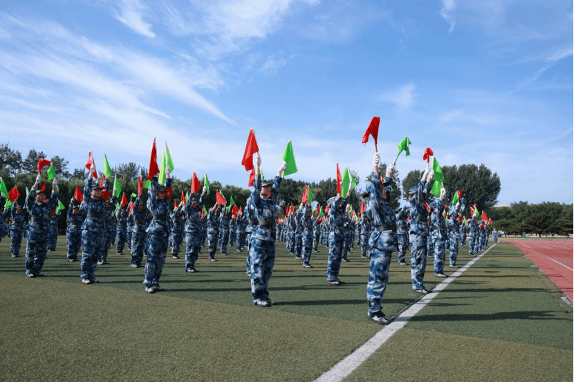 军训训练成果展示精彩纷呈。分列式上,同学们士气高昂、步伐铿锵,赢得阵阵掌声。特色科目展示中,坦克旗语、匕首操、刺杀操、军体拳、格斗术、战术演练,同学们身手敏捷、飒爽英姿。