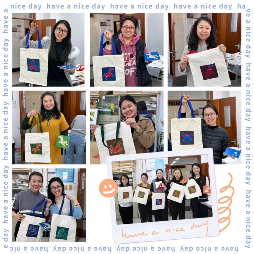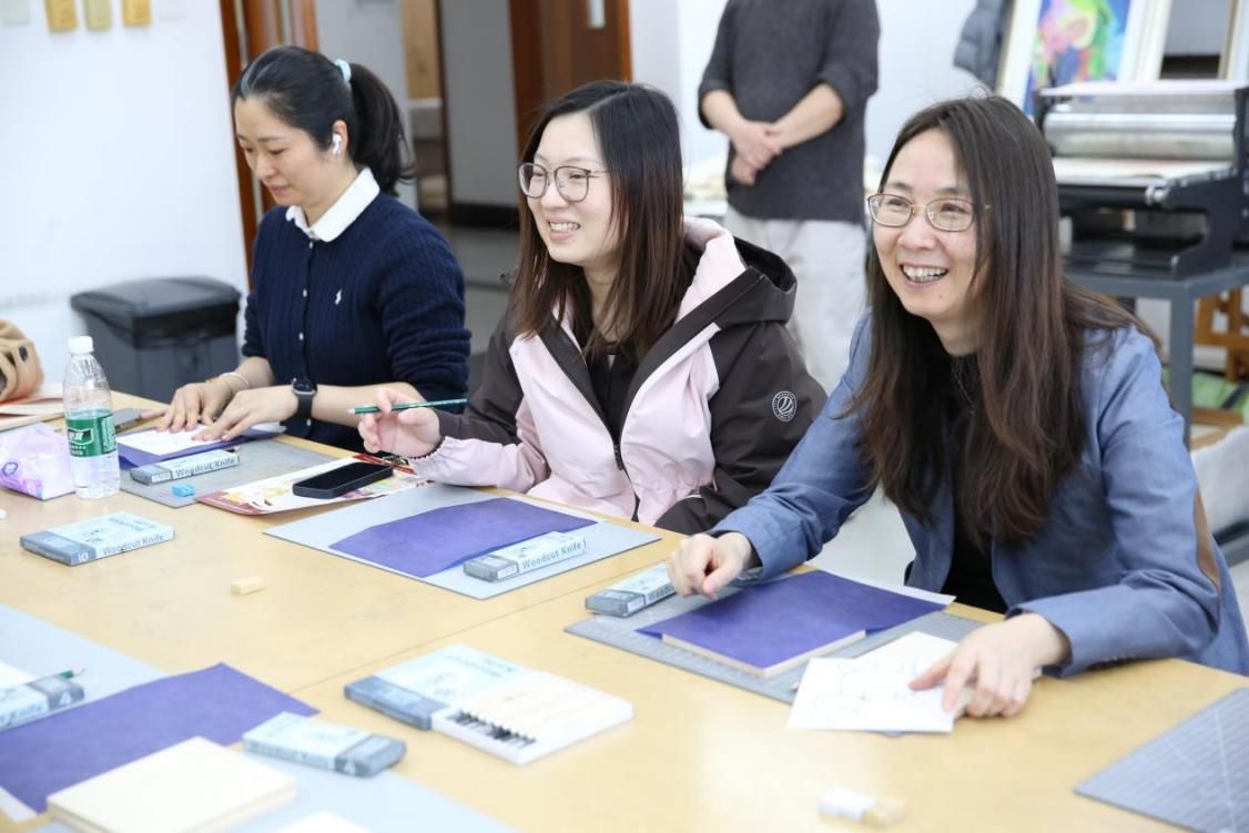 儿童发展与教育学院艺术学博士马丽娜老师首先向大家介绍了套色版画的制作原理和基本工艺流程,并通过现场示范展示了版画创作的全过程。参加活动的老师们依次体验刻版、滚墨、套印等制作步骤,同时融入了自己的理解与创意,随着一块块版面完成、颜色逐层叠加,造型各异的小马跃然布面,或灵动活泼,或昂首奋进,既寄托着大家对新一年的美好期许,也为这个春日增添了一份独特的艺术气息。在刻版与拓印的过程中,老师们体验到了创作的乐趣,在交流互动中感受传统版画艺术的魅力,活动现场洋溢着轻松愉快的氛围。
