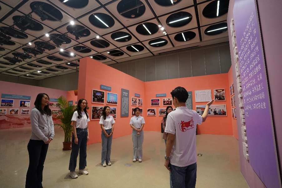 “在党的十八大报告、十九大报告和二十大报告中,都明确提出,坚持男女平等基本国策,保障妇女儿童合法权益。党中央的系列决策部署,为妇女儿童事业的发展开辟了广阔道路。”学生讲解员朱悦娓娓道来,让师生们听得津津有味。