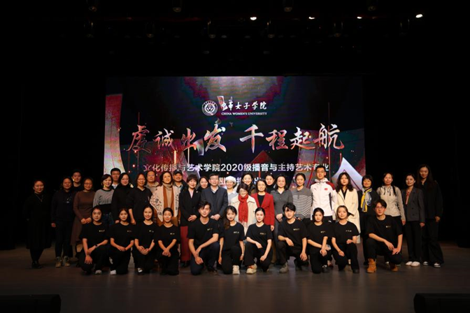 为深入推进新文科背景下中华女子学院(全国妇联干部培训学院)播音与主持艺术国家级一流本科专业建设,传承我国老一辈播音艺术家葛兰老师的艺术家精神,总结国家级一流本科专业建设阶段性教学成果,促进2020级本科毕业生就业,1月4日,“虔诚出发 千程起航”2020级播音与主持艺术专业毕业展演在中华女子学院本部礼堂举行。