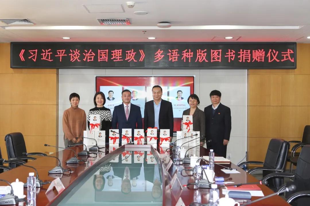 仪式上,李书记向北京崇学文化发展有限公司余先生捐赠该套图书表达了感谢,并简要介绍学院历史和办学育人、对外交流工作。此次捐赠的多语种图书,丰富了图书馆外文馆藏资源,是学校图书馆宝贵的文献资源,有助于全校师生在国际交流中遵循习近平治国理政思想,有助于留学生了解习近平治国理政思想,有助于在民间外交中宣扬和讲好中国故事。