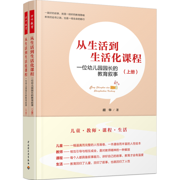 这是2021年4月23日 “世界阅读日”当天首发的《从生活到生活化课程——一位幼儿园园长的教育叙事(上下册)》这本书腰封上的四句话,对全书的研究对象、写作内容做了点睛式的概括,也是对中华女子学院附属实验幼儿园建园16年幼儿教育实践经验和特色的高度凝练。
