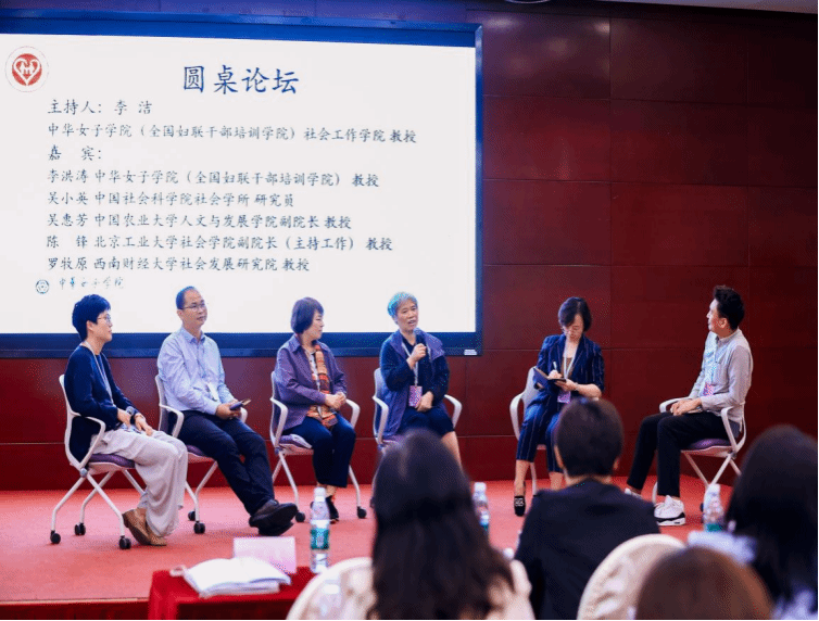 圆桌论坛环节,中华女子学院(全国妇联干部培训学院)李洪涛教授、中国社会科学院社会学所吴小英研究员、中国农业大学人文与发展学院吴惠芳教授、北京工业大学社会学院陈锋教授、西南财经大学社会发展研究院罗牧原教授以及中华女子学院(全国妇联干部培训学院)社会工作学院李洁教授,围绕“妇女发展与社会治理创新”主题,分别从“三十年来中国妇女事业发展”“农村妇女发展与乡村振兴”“妇联组织与基层社会治理”“性别平等与数字社会治理”等方面,对我国性别平等、妇女发展与社会治理的历史进程与当下挑战展开了交流。