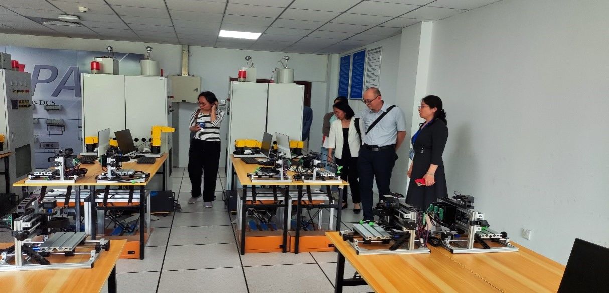 孙晓荣副院长带领实地参观了人工智能高性能计算平台、智能机器人实训中心等实验室,实地考察了解工业级数据标注系统、多模态交互设备、数字孪生技术、智能食品控制等前沿技术或智慧应用场景等在教学中的应用,借助实验室,通过校企联合开发、实战项目对接等模式,为学生构建了从理论到产业落地的全链条实践场景。