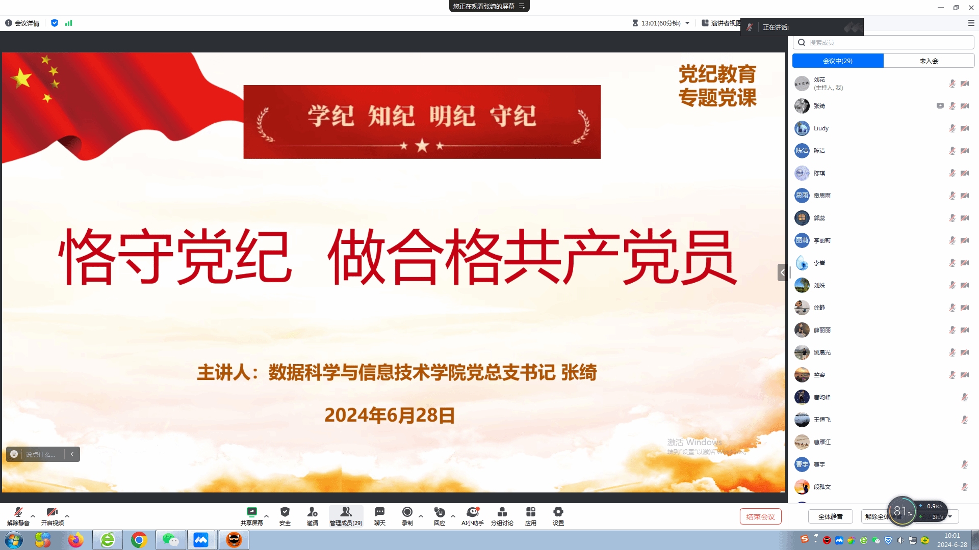 为深入学习贯彻习近平总书记关于党纪学习教育的重要讲话和重要指示精神,推动党纪学习教育走深走实,2024年6月,数据科学与信息技术学院党总支及下属各党支部积极开展党规党纪专题党课教育。