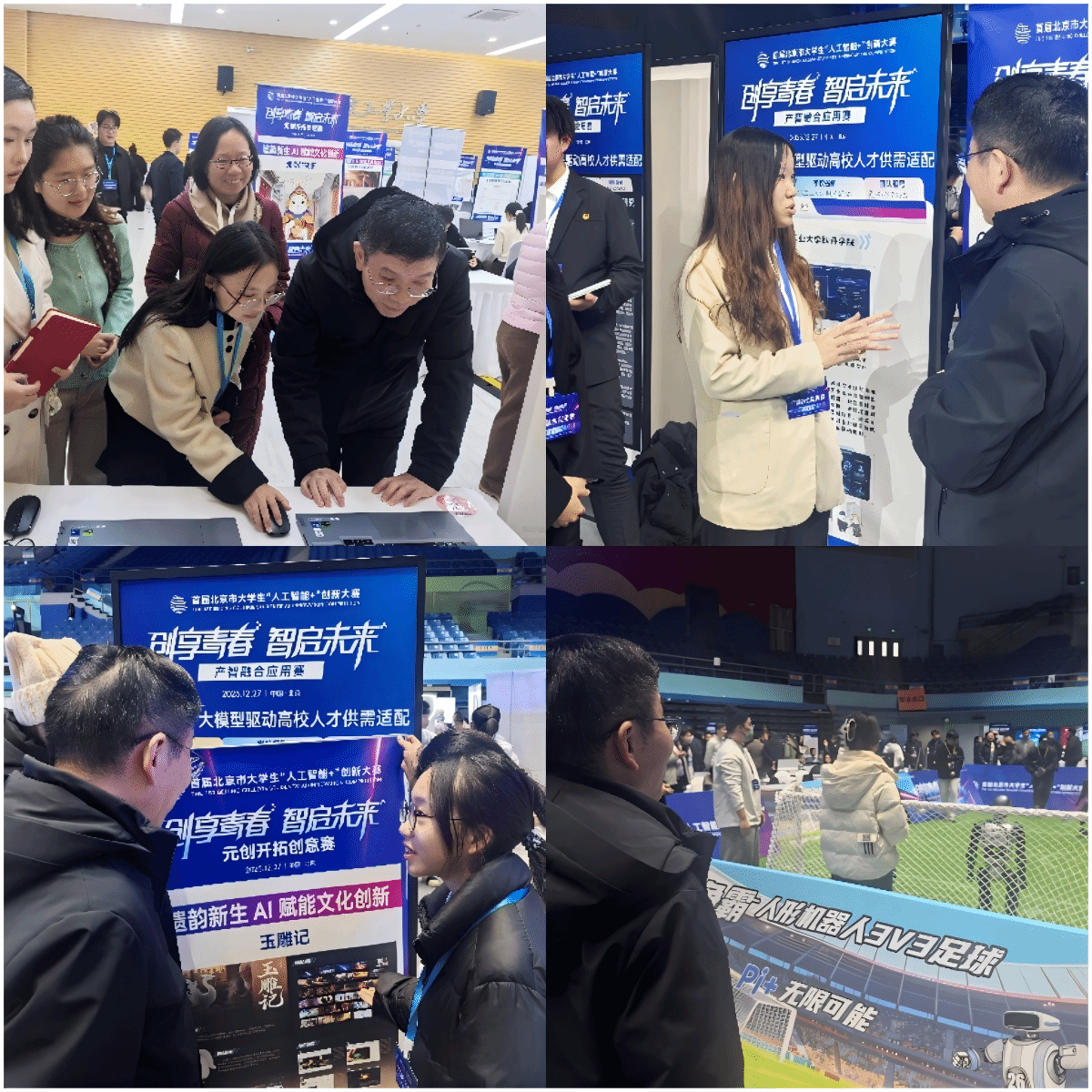 20251227日,以创享青春、智启未来为主题的首届北京市大学生人工智能+”创新大赛在北京工业大学奥运场馆圆满举行,几十所首都高校学生参与此次大赛。大赛创新采用赛、展、会三位一体模式,成功打造集高强度竞技、高成果展示、高水平对话于一体的开放式创新生态圈。我校周应江副院长应邀出席大赛开幕式并现场参观高校创新成果及参赛作品展,我校学生参赛作品给予高度评价,数据科学与信息技术学院数字素养中心主任穆翠霞随队参会。