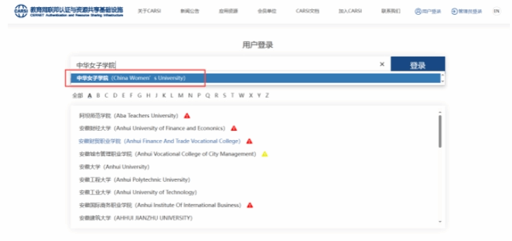 2.首次登录选择CARSI认证