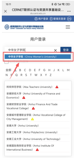 3.输入“中华女子学院”选择登录