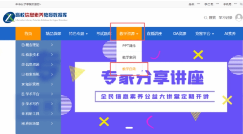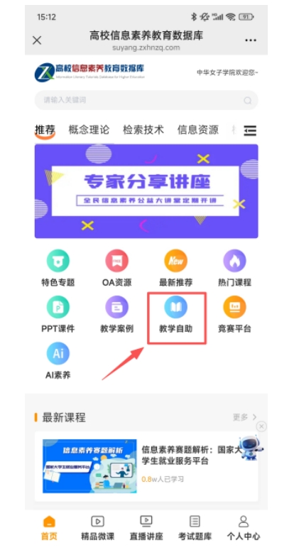 6.点击“女院图书馆信息素养微课堂”