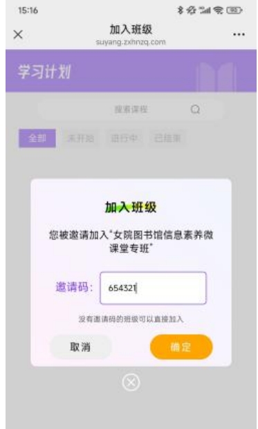 5.输入邀请码“654321”加入班级