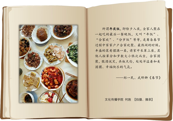 新学期伊始,借着新年的余温,我们收到了各位参与者发来的活动资料,浓厚而又温馨的年味被一张张照片、一段段文字描绘着、记录着,让我们看到了习俗中透露的人文情怀和历史记忆。特将来稿整理分享如下,与全校师生共同回味。