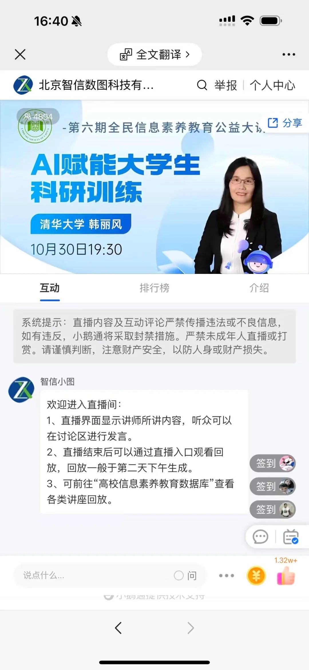 (讲座结束截图)