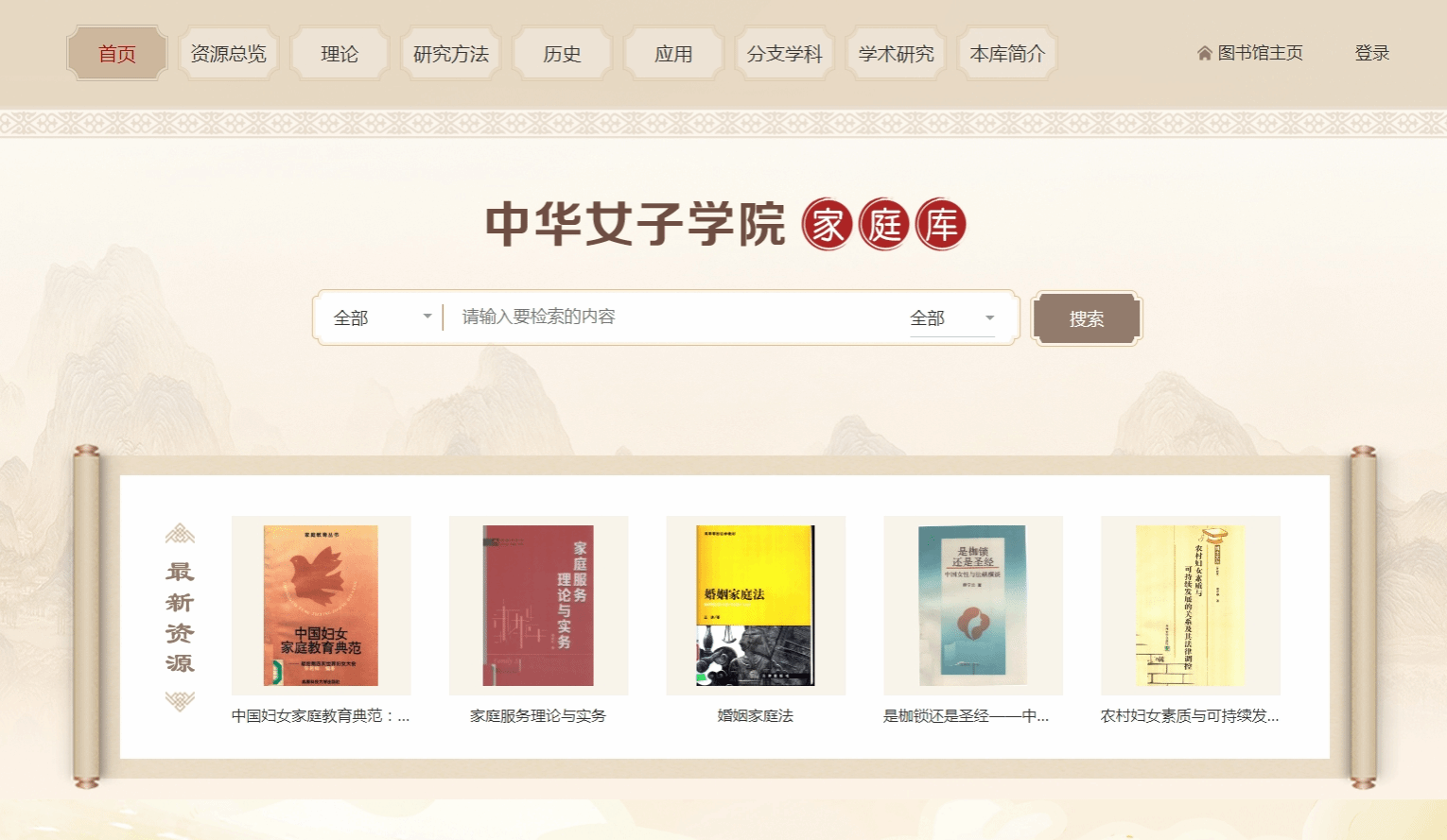 本库简介:家庭作为社会的组织细胞,有着不可替代的社会功能。习近平同志指出:妇女在“树立良好家风方面”具有“独特作用”;民法典婚姻家庭编草案三次审议稿增加了有关树立优良家风、弘扬家庭美德的规定。中华女子学院图书馆作为全国妇联直属的女子高校图书馆,基于女性/性别特色资源库建设项目,力求以家庭子库促进家庭建设的发展。子库按照理论、历史、方法、应用、分支学科等维度对馆藏相关文献进行标引,展示了家教家风、家庭理论、家庭变迁、家庭教育、家事法学等多方面内容。家庭库内容将不定期更新,敬请关注!
