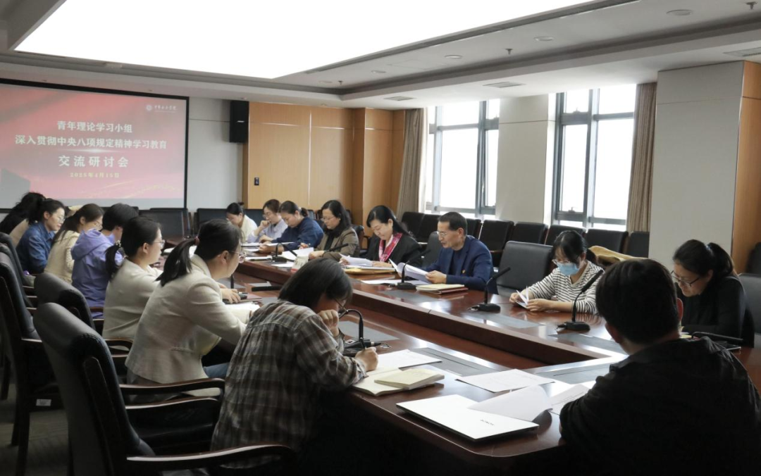 学院青年理论学习小组组长于婷婷带领大家深入学习了中央八项规定精神,结合小组工作实际系统解读了中央八项规定的核心内容与精神内涵,分享了自己的学习体会,认为青年教师要全面、深刻地把握中央八项规定的实践意义,在真学真信中深化理解,在真行实干中落实要求。