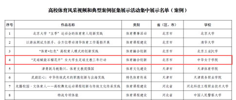 北京市获此殊荣的另外三所高校为北京大学、清华大学和北京工业大学。全国共有50所高校入围高校体育风采典型案例、100所高校入围高校体育风采视频作品,入围的典型案例和视频作品在“人民网+”客户端、人民日报少年客户端集中展示。