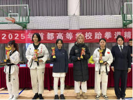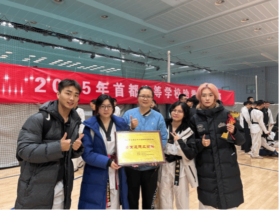 2025年11月9日,由北京市大学生体育协会主办的首都高等学校第二十一届跆拳道精英赛在北京科技大学体育馆圆满落幕。中华女子学院跆拳道队在周山山老师的带领下,7名队员出征赛场。尽管参赛人数远少于其他队伍,但队员们凭借过硬实力与出色发挥,最终斩获三项第1名,一项第3名,女子团体总分第6、男子团体总分第8的优异战绩。用拼搏书写了巾帼风采与青春荣光!