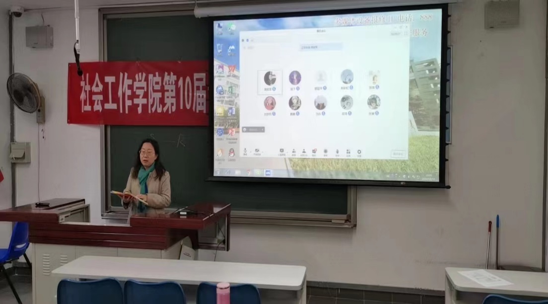 比赛由学院巫晓莲书记主持,李敏院长宣读讲解了比赛规则,学院邀请到了北京市高校第十二届青年教师教学基本功比赛一等奖获得者儿童发展与教育学院王鹏老师作为外请评委,社工学院教师通过线上线下相结合的方式观摩了比赛。
