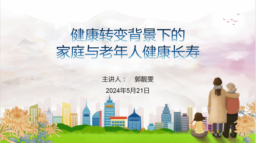 郭靓雯老师以《健康转变背景下的家庭与老年人长寿》为题,探讨了中国现代化进程中,家庭正在发生的深刻变革对老年人晚年健康长寿的影响。